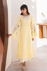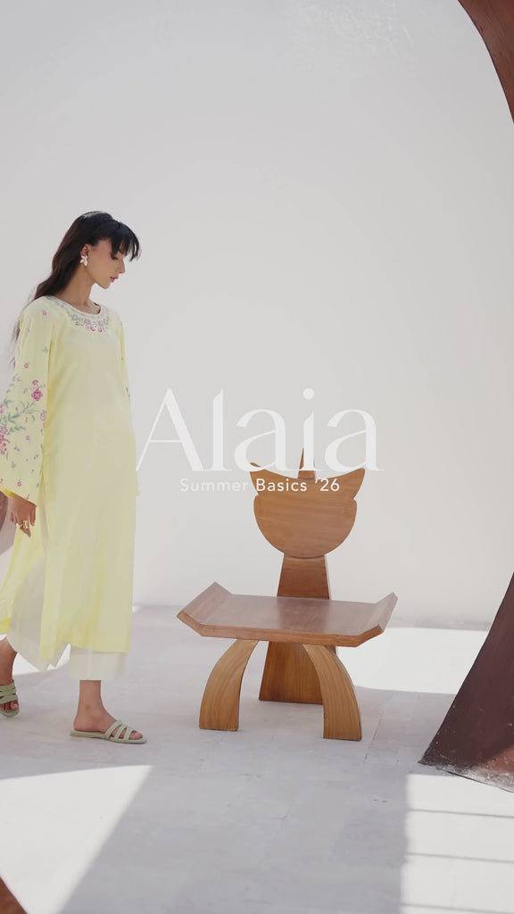 A stunning long length butter yellow shirt with embroidery on the neckline and bell sleeves. Paired with contrasting off-white culottes. Made for easy breezy summer days.