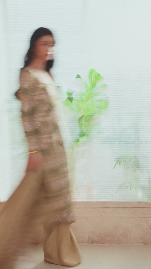 An exquisitely crafted chiffon ensemble, detailed with fine thread embroidery and subtle sequin accents in an all over floral design for a graceful sheen. The embroidered shirt is paired with flowing tonal trousers and finished with a delicately draped embroidered chiffon dupatta. Timeless, elegant, and effortlessly luxurious.